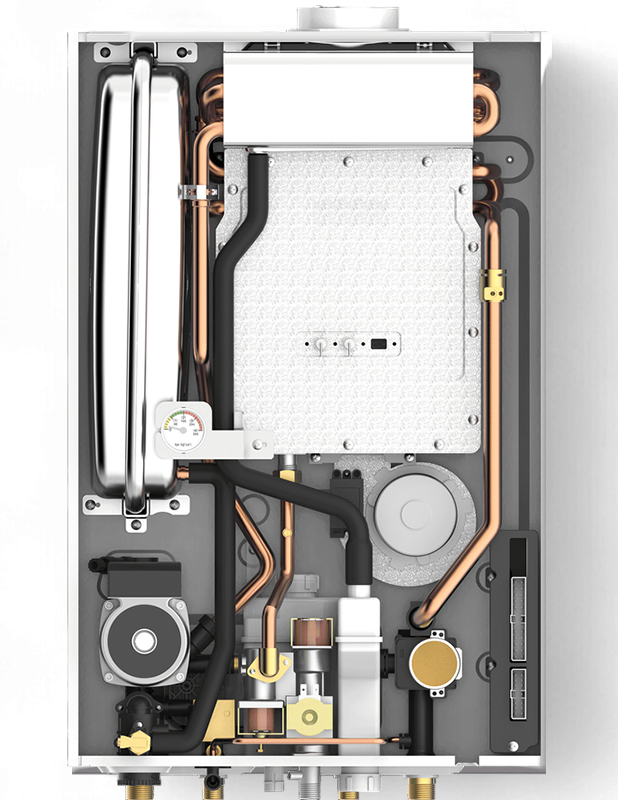 Встроенный конденсационный теплообменник из нержавеющей стали.